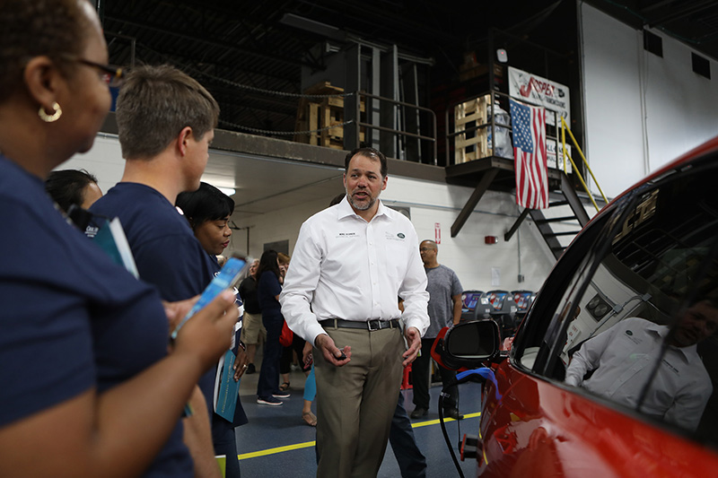 Mike Schnur, (center, white shirt) of Jaguar Land Rover North America, provides insight