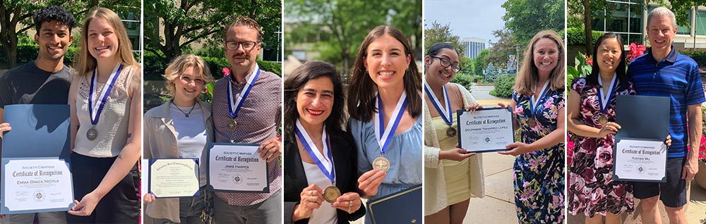 The 2022 inductees, from left to right, are Emma Grace Nicola, Jamie Harper, Sarah LaPointe, Stephanie Navarro Lopez and Yuehan Wu.