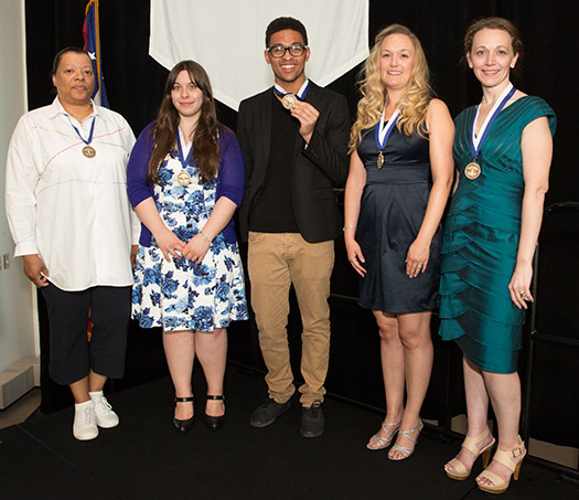 2014 Inductees, from left to right:Doris McDaniel, Massage Therapy Rebecca Treloar, Associate of Arts Jeffrey Tucker, Associate of Arts Holly Waddell, Marketing Amanda Webb, Marketing