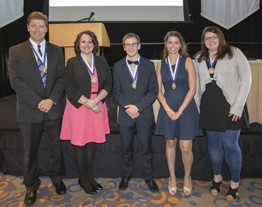 2016 Inductees, from left to right: Jessica Sato, Social & Human Services Sara Ingle, Dental Hygiene Brandon Cornute, Associate of Arts Brandon Rodgers, Associate of Science