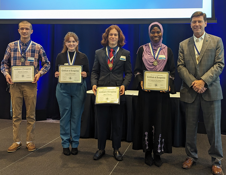 The 2024 inductees; Isayah Curtis, Lilly Watters, Ben Fisher, Muktharatullah Kamal-Muili, Dr. David Harrison.