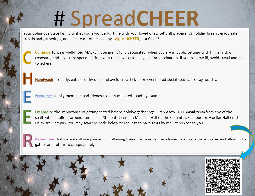 The COVID Student Support team reminds you that safe holiday practices are important when traveling this Thanksgiving. You are encouraged to pick up a free COVID-19 test kit prior to any travel. They are available in Student Central in Madison Hall on the Columbus Campus and Moeller Hall on the Delaware Campus.