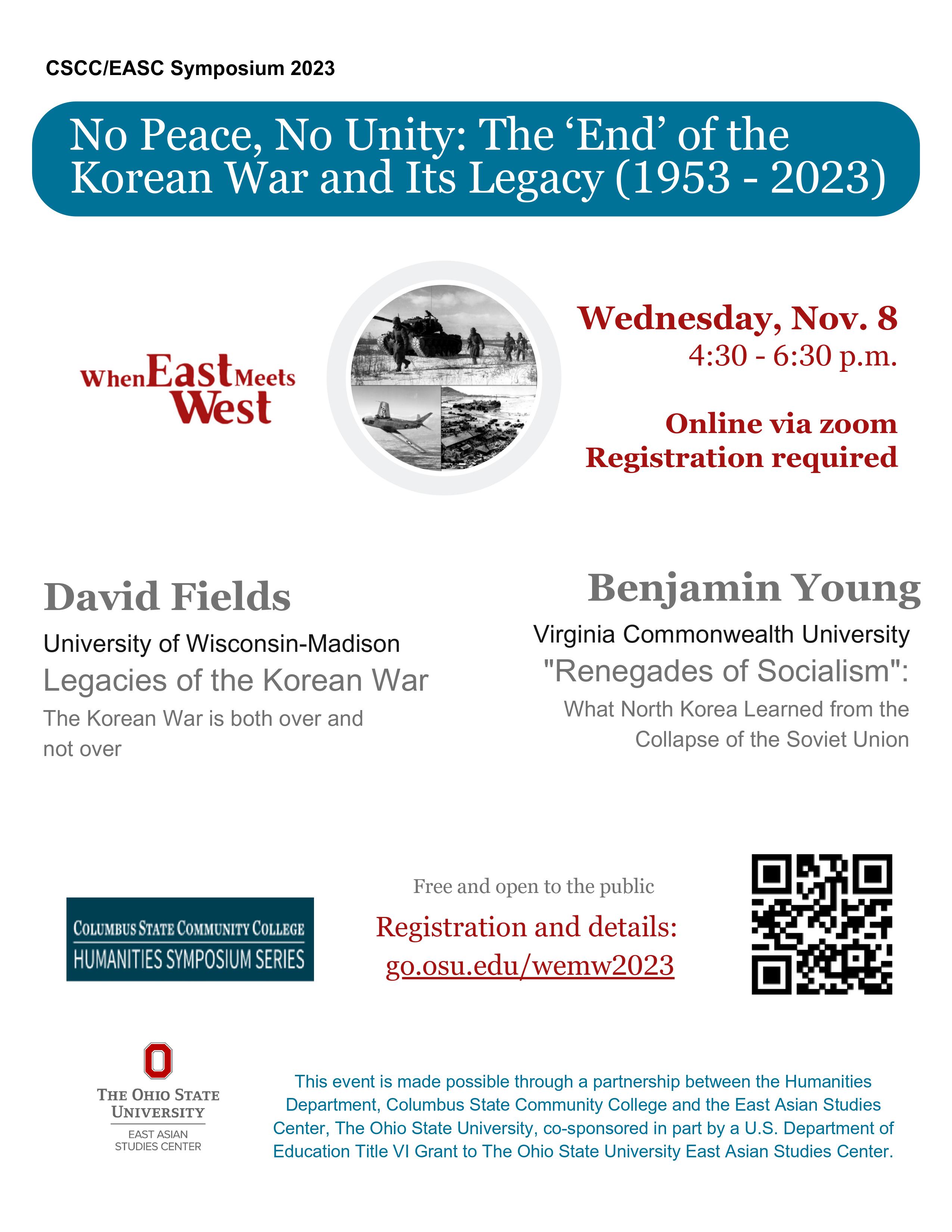 The Humanities Department symposium “When East Meets West: No Peace, No Unity: The ‘End’ of the Korean War and Its Legacy (1953-2023),” will be held virtually.