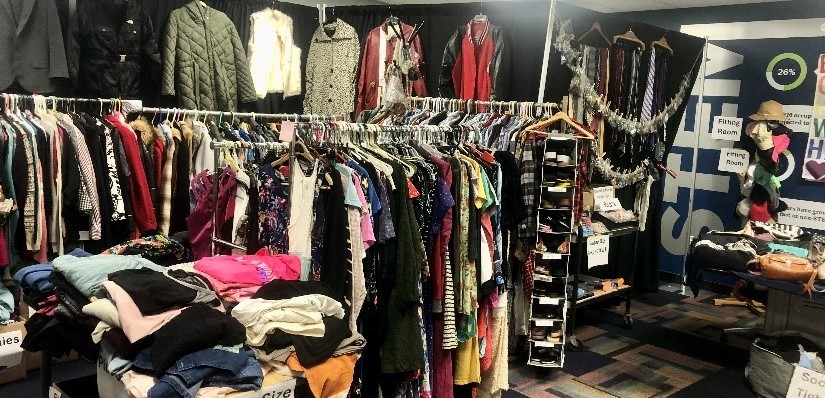 Clothing donations are being accepted in the offices of Biological & Physical Sciences,