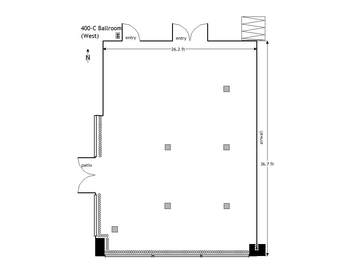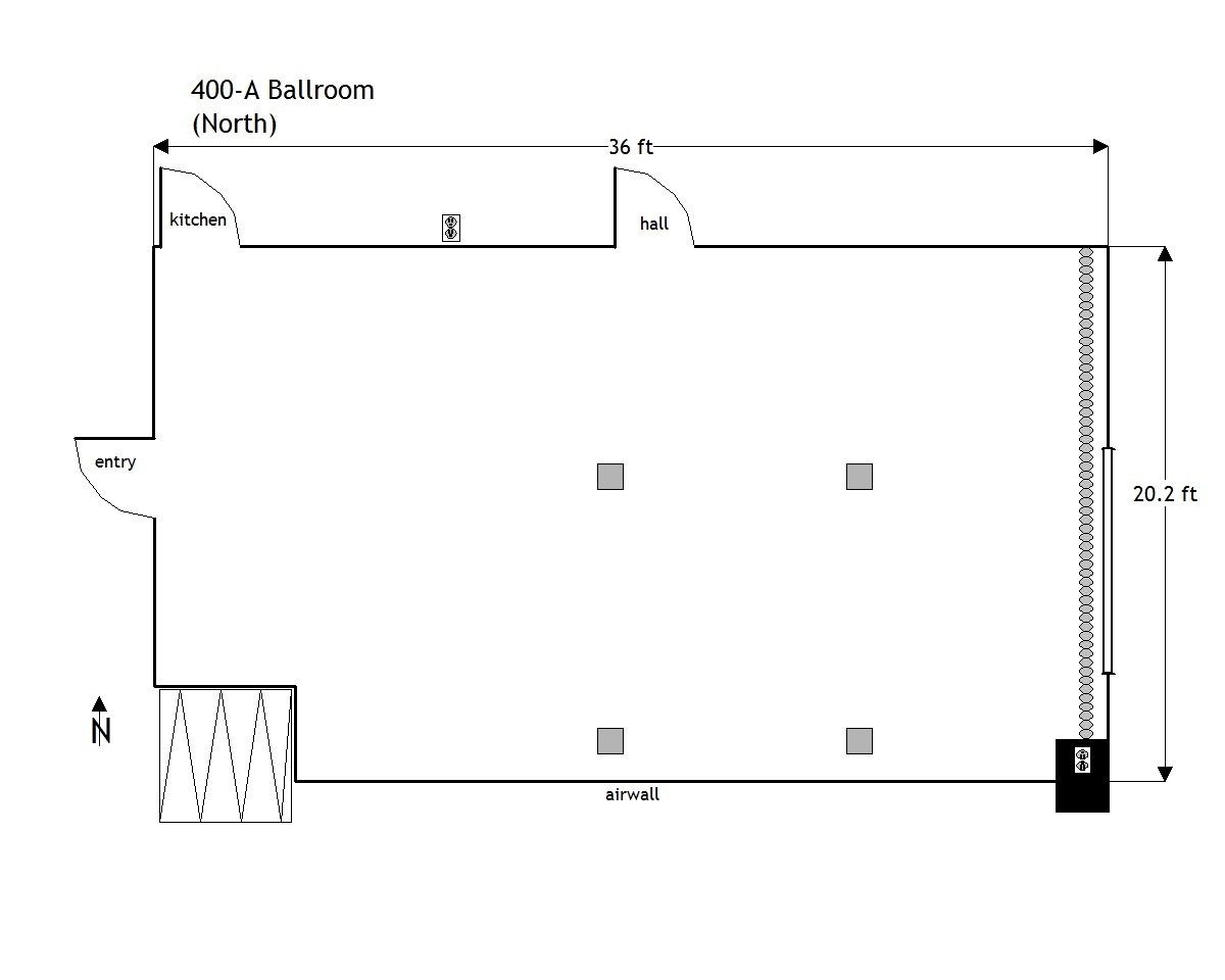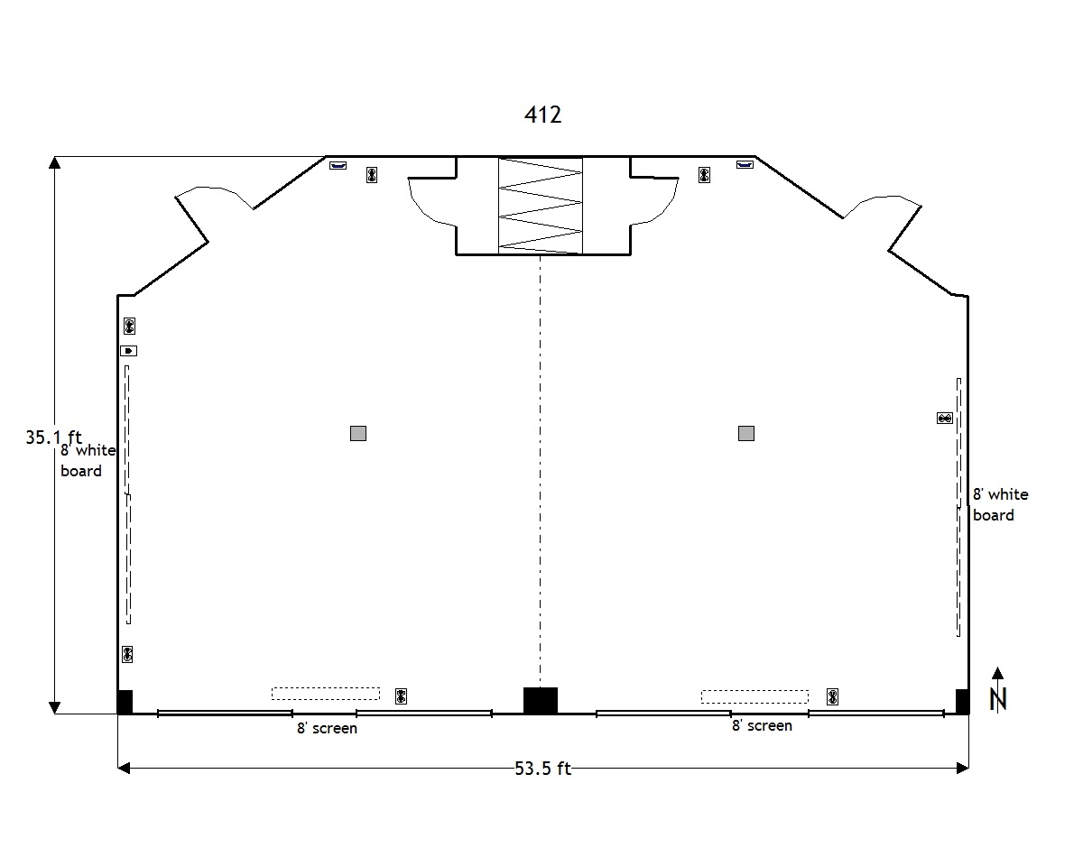 Room Dimensions: 53' - 5" x 35' - 1" (412 A & B combined)