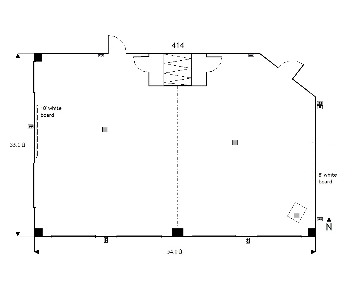 Room Dimensions: 54' - 2" x 35' - 1" (414 A & B combined)