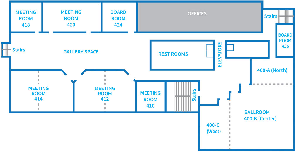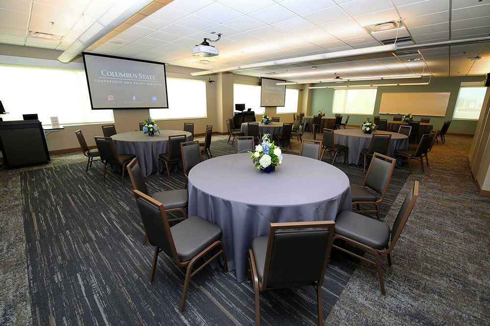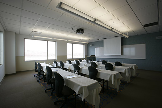 Recently renovated The Conference Center offers 13,000 sq. ft. of flexible meeting space on one convenient level. Most rooms are equipped with ceiling-mounted video/data projectors and screens. Each room also has individual climate control. The Ballroom has 23-foot floor-to-ceiling windows with motorized sunshades, and lighting controlled by touch panel screens. Our facility offers complimentary wireless internet.