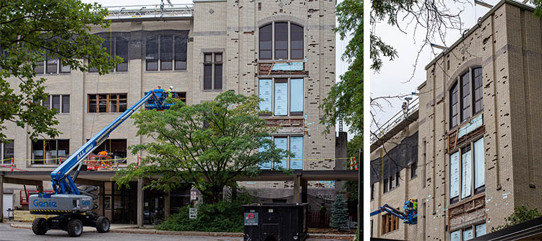 Extensive renovations are underway on Aquinas Hall. State funding provided the $4 million needed for the full masonry restoration and the replacement of all windows in the historic building. The work began in February and is set to be complete by the end of the year. Structural support deterioration, water infiltration, and deferred maintenance led to the exterior masonry failures that the project is addressing. Previous work on the building included a full roof replacement five years ago.