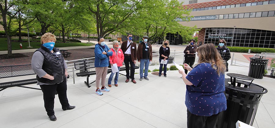 After Gov. Mike DeWine announced on April 1 that colleges would have the option to provide clinics, Executive Vice President Rebecca Butler asked Kristen Treadway, executive director of Human Resources, to explore options for Columbus State. With the help of a small team, the massive effort was underway. The second-floor Events Center in Mitchell Hall became a COVID-19 vaccine clinic for the day on April 20. Nearly 500 students, staff, and faculty members who made appointments received their first Pfizer shot. The second shot was administered on May 11.