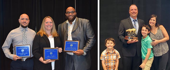 Pictured below, left to right, Apt, Dellinger, and Bryant Sr. Not pictured: Towning and Hargus. Pictured right: Bracone and family.