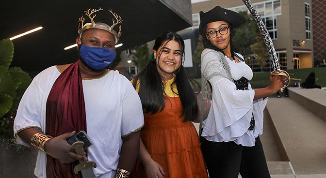 Left to right: Abdi Jama, program coordinator in Diversity, Equity and Inclusion, and student ambassadors Aarju Chaulagain and Adeina Davis.