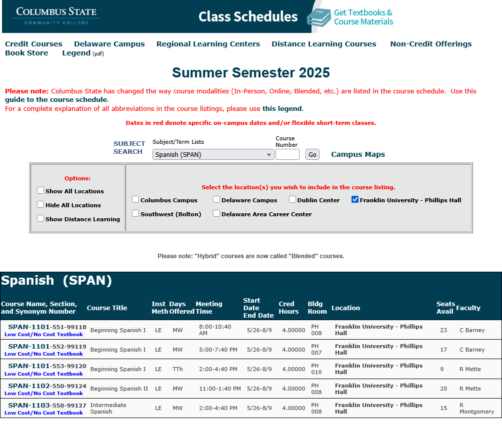 On the Class Schedules page, you can select "Franklin University - Phillips Hall" under Locations.